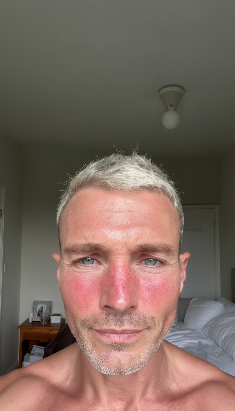 Before: Harsh lighting and uneven tone making your skin look worse on Zoom, dates, and photos.